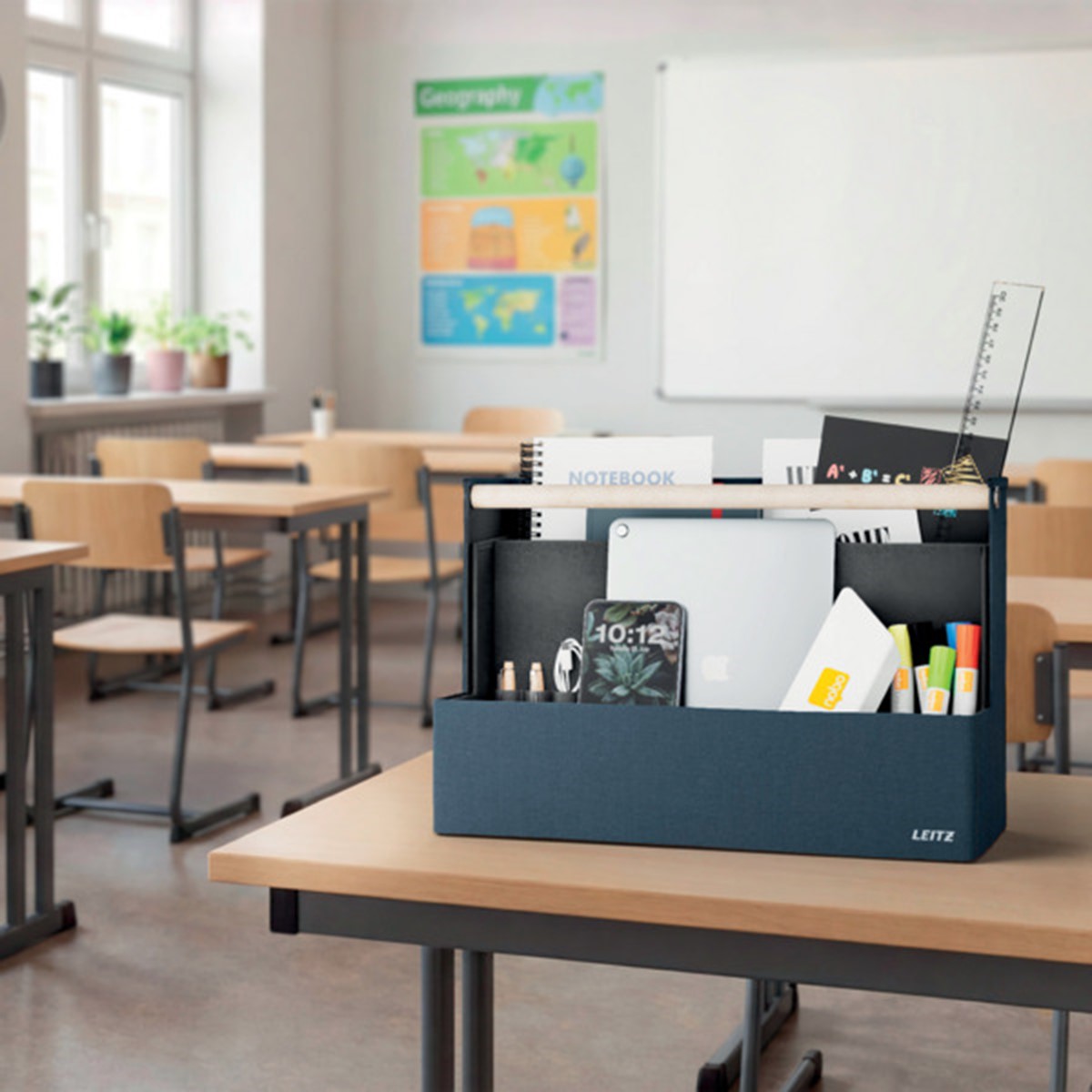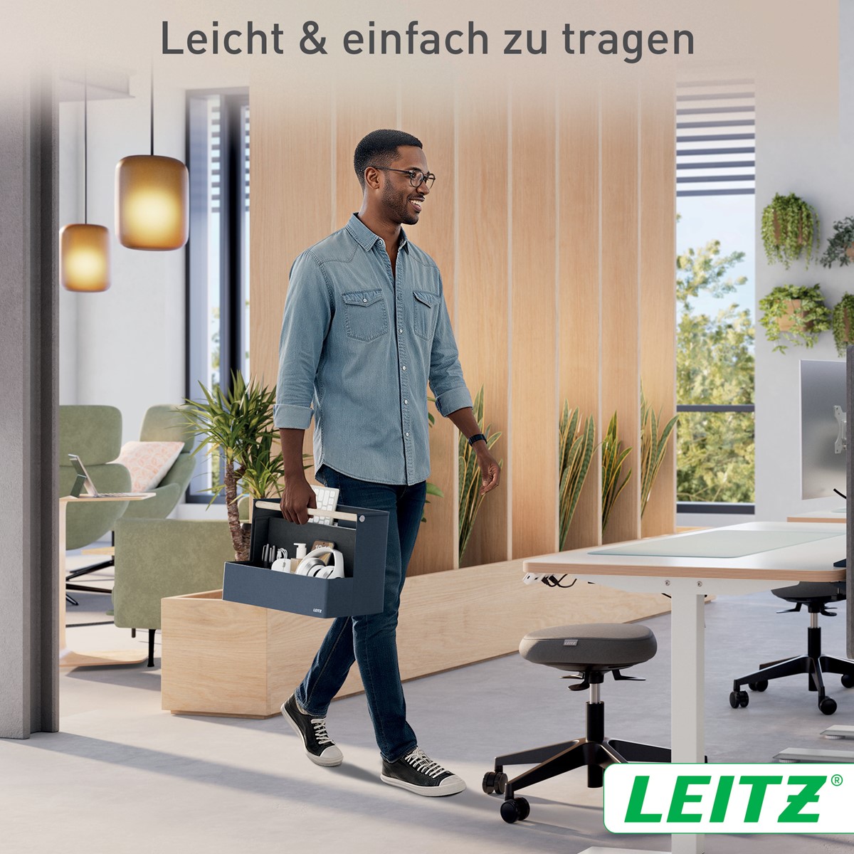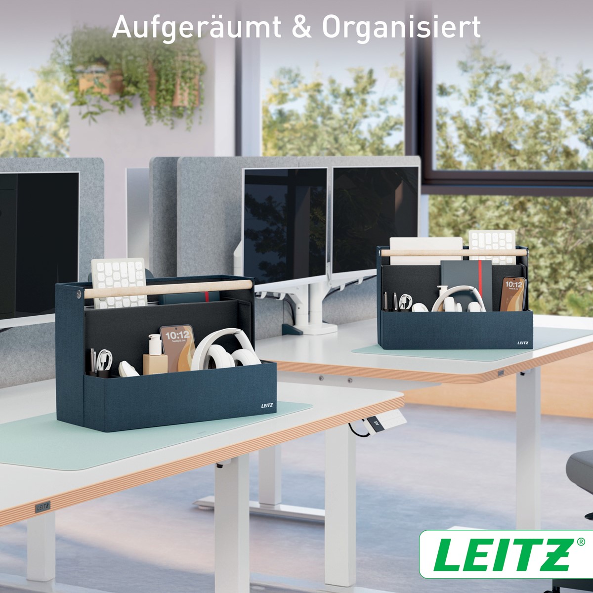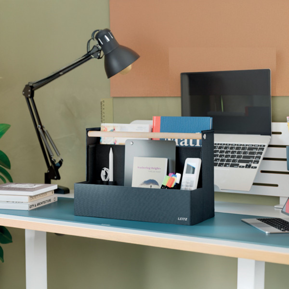 Fühlen Sie Sich mit der Leitz Aufbewahrungsserie aus Stoff überall dort wie Zuhause, wo der Tag Sie hinführt. Mit dem minimalistischen Design und der einladenden matten, samtgrauen Oberfläche können Sie im Büro, zu Hause, beim hybriden Arbeiten oder überall dazwischen stilvoll auftreten und gleichzeitig organisiert bleiben. Der Leitz Schreibtisch Organizer aus Stoff verfügt über vier separate Fächer, in denen Sie alles unterbringen können, was Sie für den kommenden Tag benötigen.