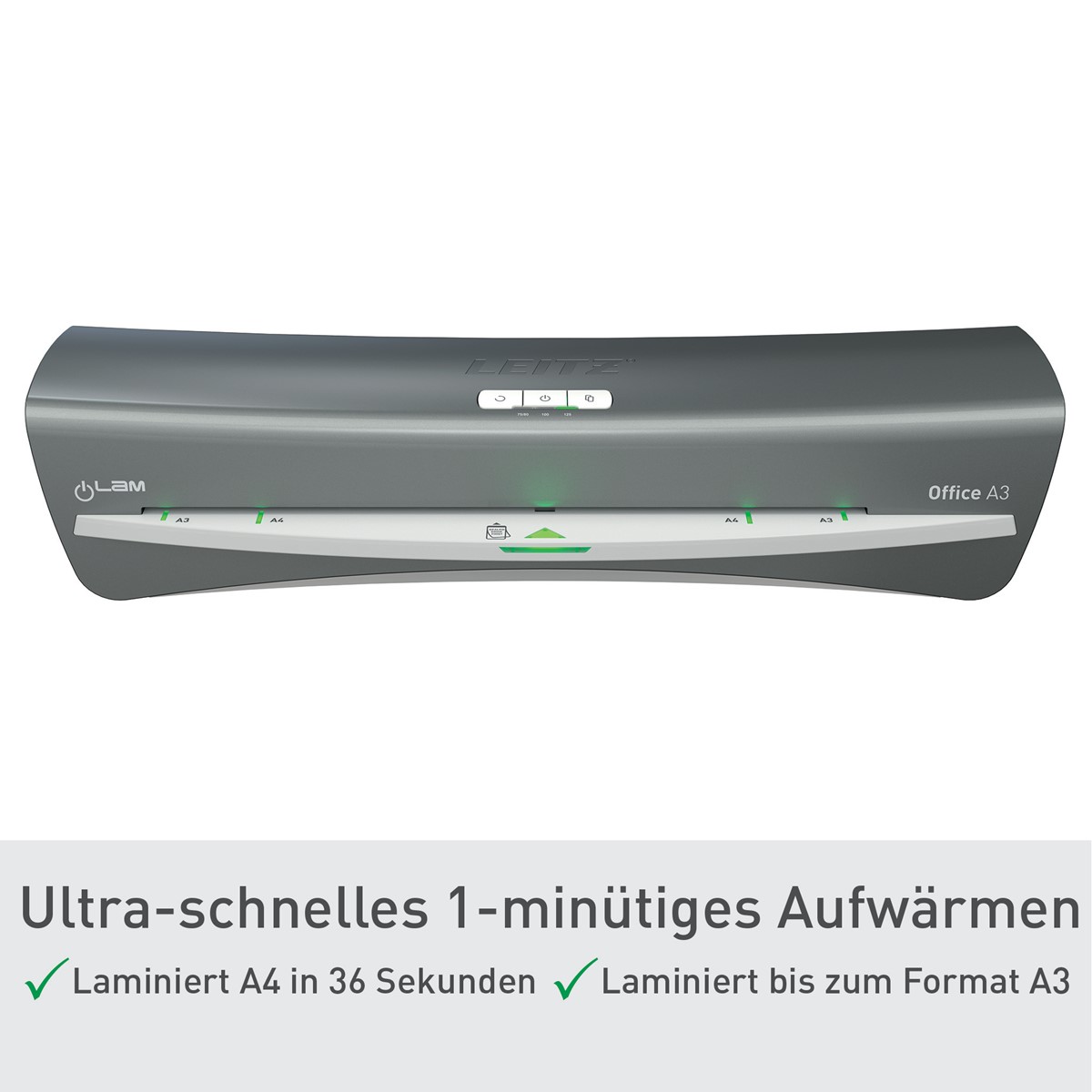 A3 Laminator mit schlankem Design und High Speed Vorheizen. Nur 1 Minute Aufwärmzeit. Für 80 bis 125 mic.