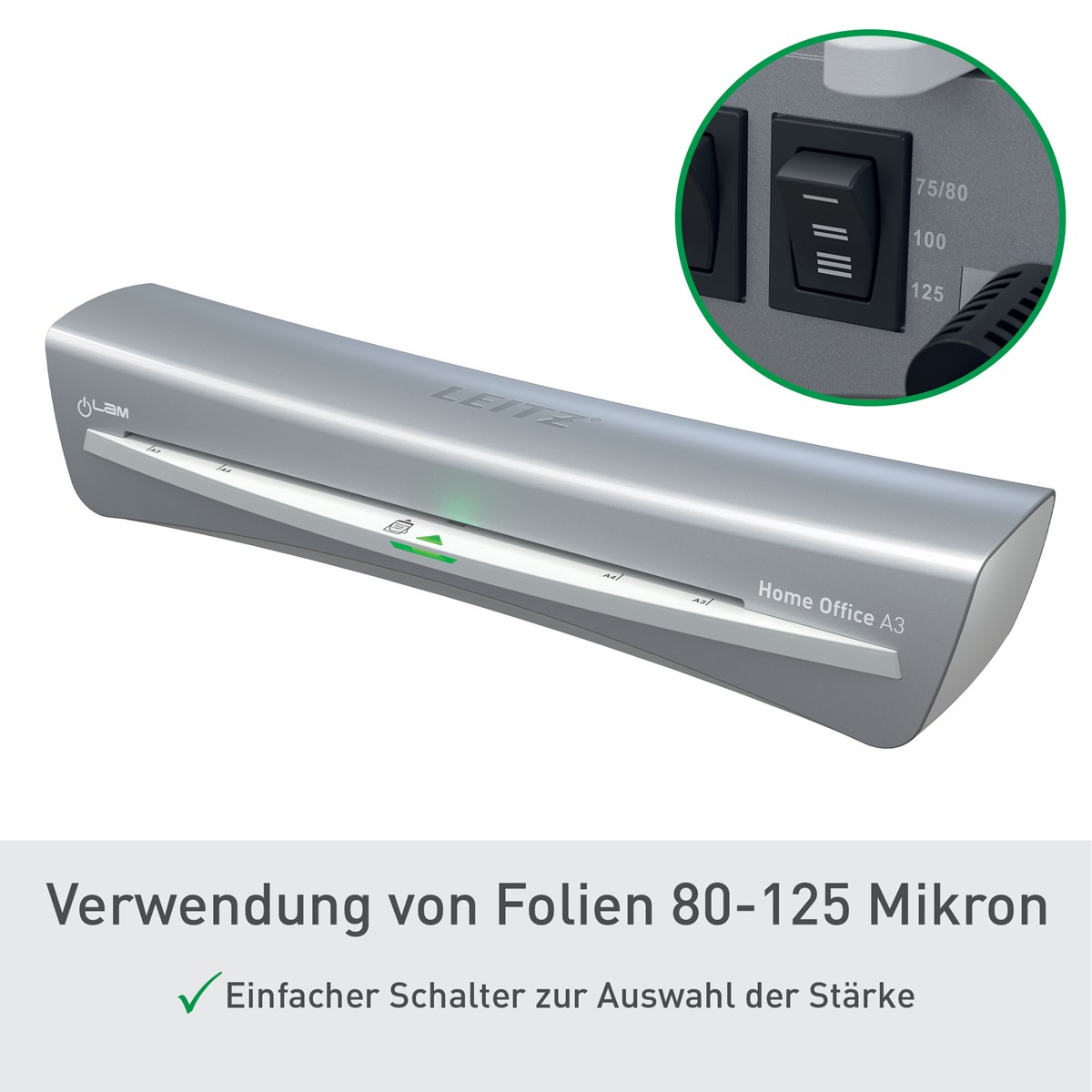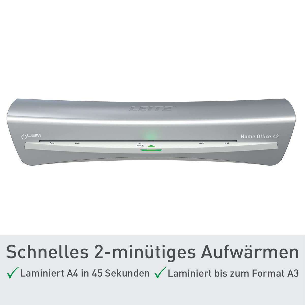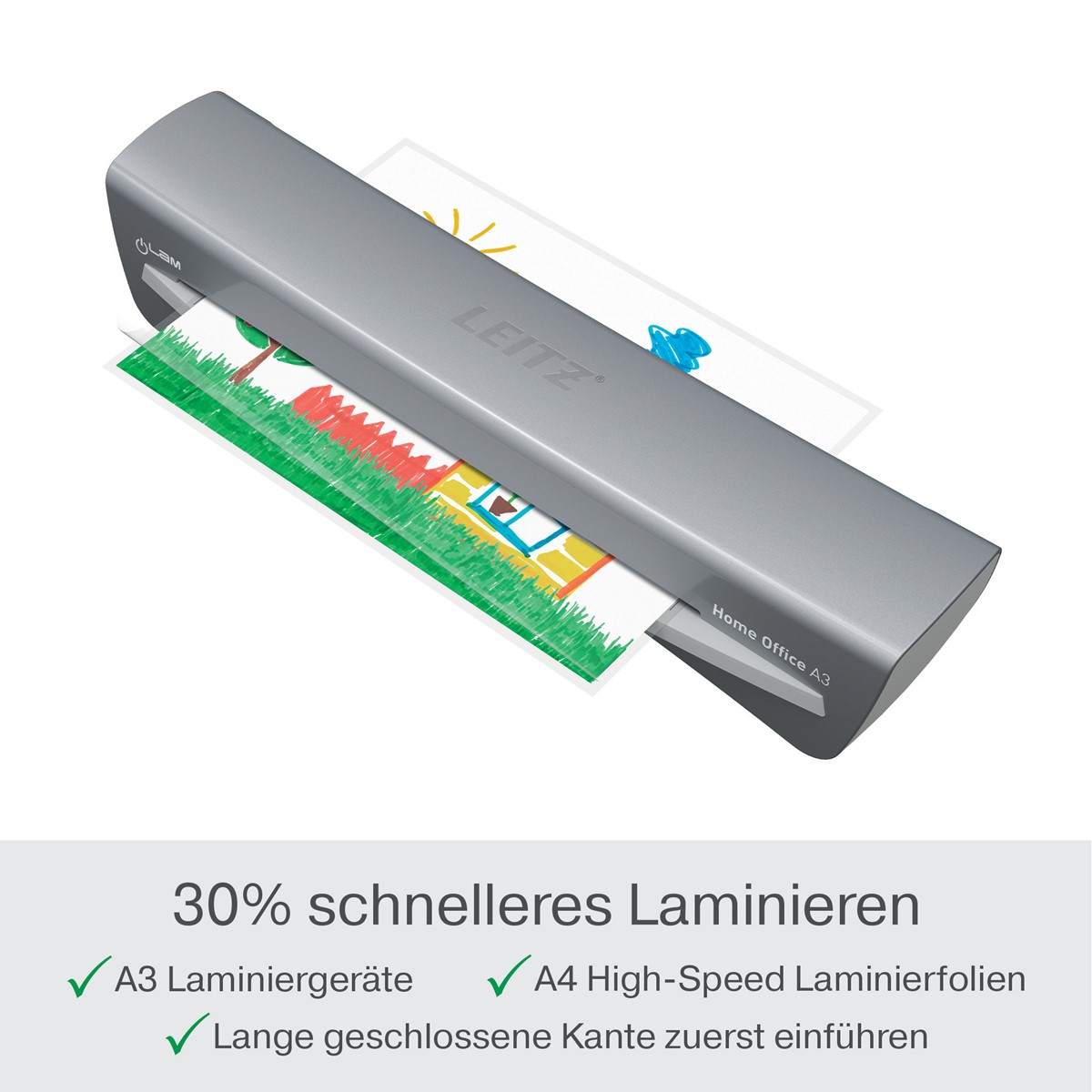 Moderner A3 Laminator mit kompaktem Design. Nur 3 Minuten Aufwärmzeit. Für 80 bis 125 mic.