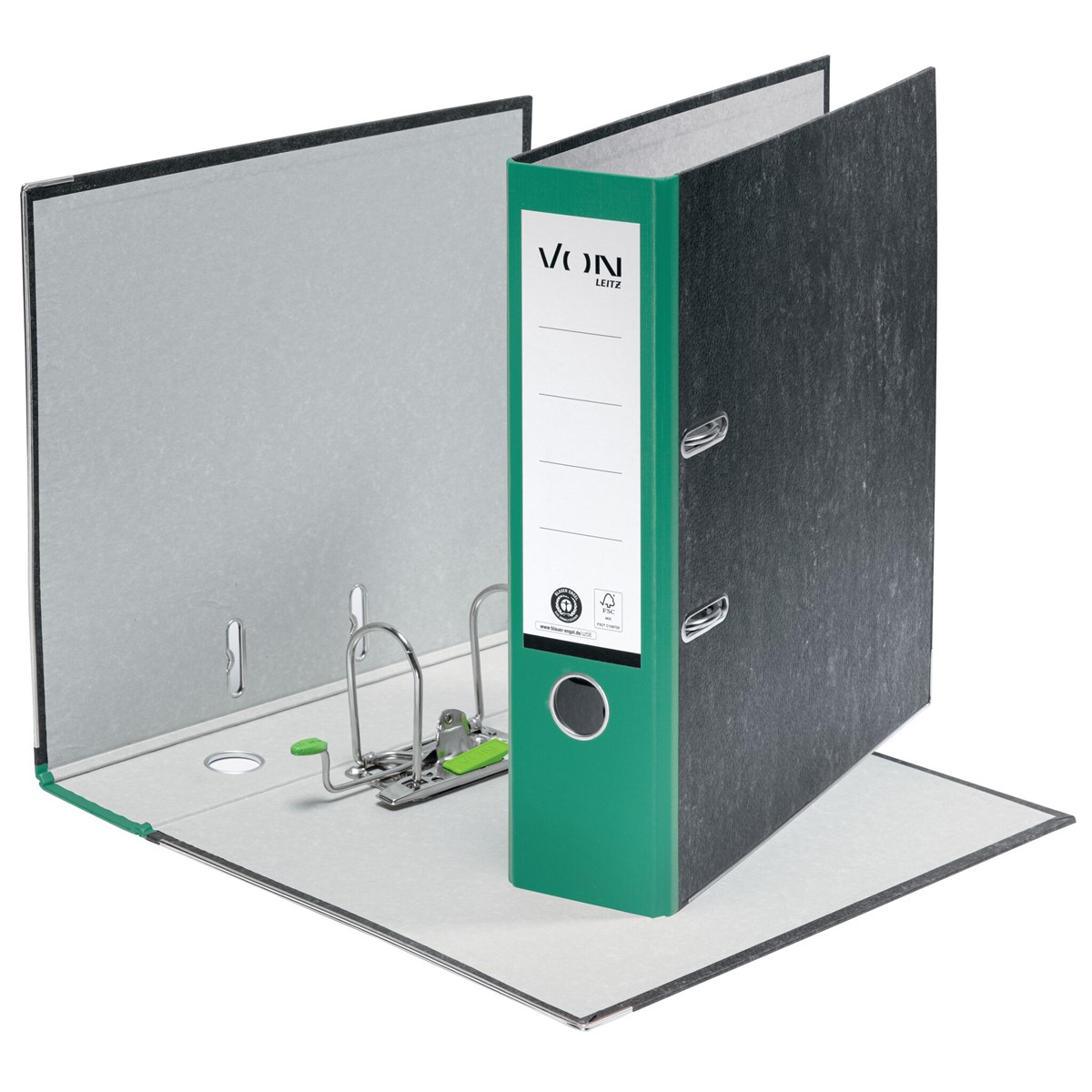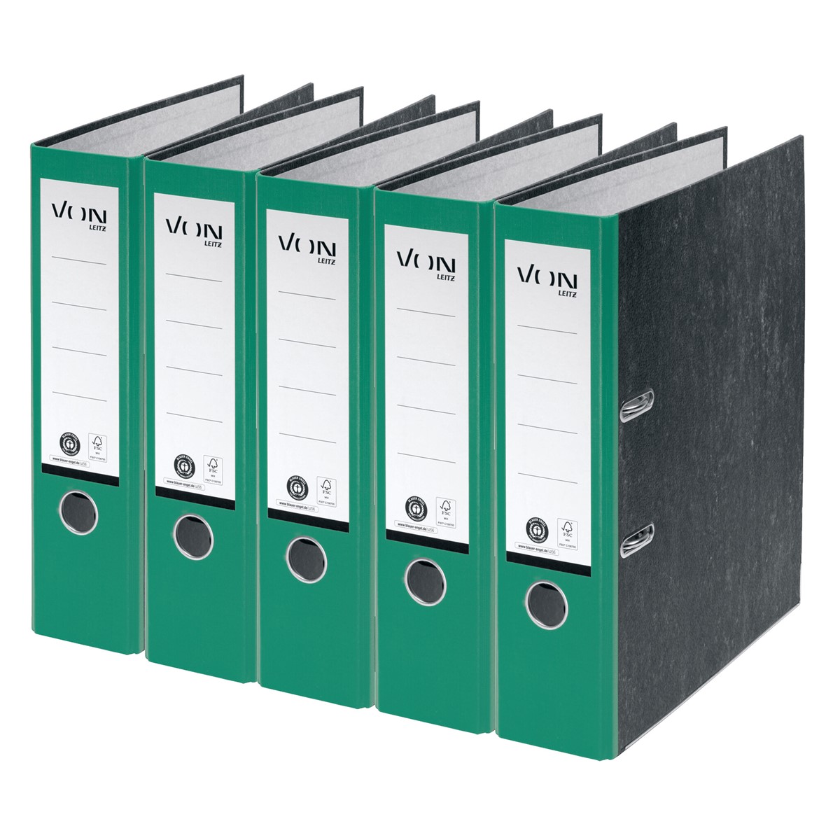 5er-Pack moderne und funktionale Ordner für die ganze Familie und für jeden Tag. Dieser A4-Ordner fasst bis zu 600 Blatt und ist die perfekte Lösung zur Ablage von Unterlagen für die Schule, das Studium oder Home Office. Die stabile VON Ordner-Mechanik sorgt dafür, dass alle Unterlagen sicher aufbewahrt werden und leicht zugänglich sind. Mit ihrer klassisch marmorierten Oberfläche und dem farbigen Rücken eignen sich diese Ordner aus Karton für die alltägliche Ablage wie die Organisation von Haushaltsrechnungen oder als Projektordner in verschiedenen Farben. Hergestellt aus 100 % recyceltem Karton, der mit dem Blauen Engel ausgezeichnet und FSC-zertifiziert ist und damit eine umweltfreundliche Alternative bietet. Everyday quality - von Leitz.