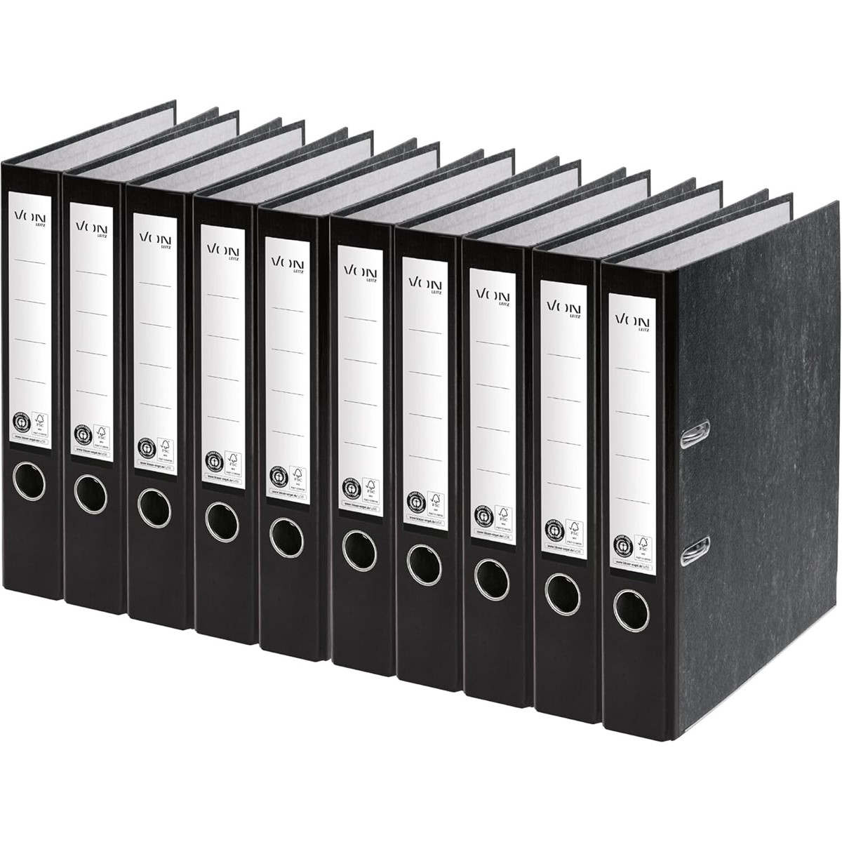 10er-Pack moderne und funktionale Ordner für die ganze Familie und für jeden Tag. Dieser A4-Ordner fasst bis zu 350 Blatt und ist die perfekte Lösung zur Ablage von Unterlagen für die Schule, das Studium oder Home Office. Die stabile VON Ordner-Mechanik sorgt dafür, dass alle Unterlagen sicher aufbewahrt werden und leicht zugänglich sind. Mit ihrer klassisch marmorierten Oberfläche und dem farbigen Rücken eignen sich diese Ordner aus Karton für die alltägliche Ablage wie die Organisation von Haushaltsrechnungen oder als Projektordner in verschiedenen Farben. Hergestellt aus 100 % recyceltem Karton, der mit dem Blauen Engel ausgezeichnet und FSC-zertifiziert ist und damit eine umweltfreundliche Alternative bietet. Everyday quality - von Leitz.