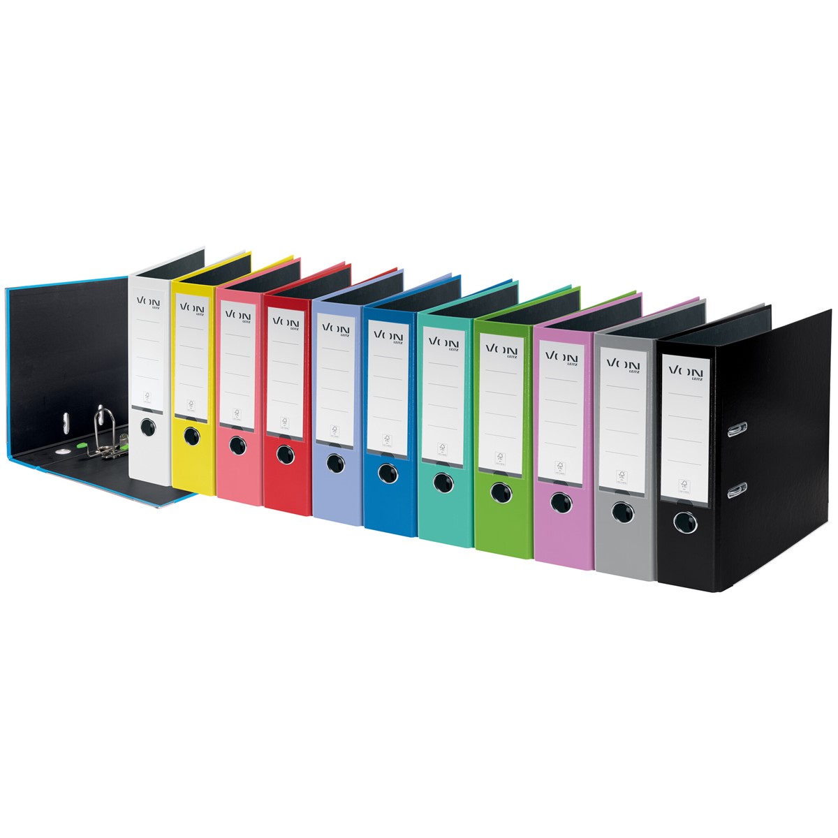 5er-Pack moderne und funktionale Ordner für die ganze Familie und für jeden Tag. Diese A4-Ordner aus Kunststoff fassen bis zu 600 Blatt und sind die perfekte Lösung für die Ablage in der Schule, im Studium oder bei der Arbeit zu Hause. Die stabile VON Ordner-Mechanik sorgt dafür, dass alle Unterlagen sicher aufbewahrt werden und leicht zugänglich sind. Mit dem langlebigen und abwischbaren Kunststoffeinband eignen sich diese A4-Ordner für alltägliche Ablageaufgaben wie die Organisation von Haushaltsrechnungen oder die farbliche Kennzeichnung von Projekten. Hergestellt aus stabilem und haltbarem FSC-zertifiziertem Karton für hohe Leistung und Effizienz. Qualität für jeden Tag - von Leitz.