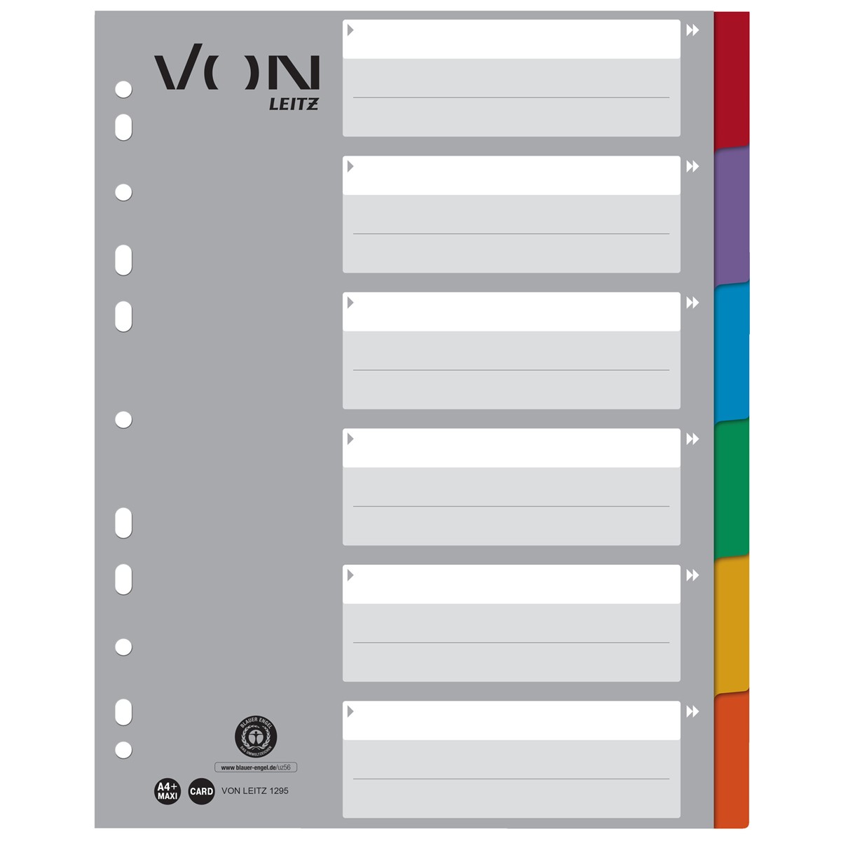 Registerblätter in leuchtenden Farben für die ganze Familie und für den täglichen Gebrauch. Diese A4-Register in Überbreite sind die perfekte Lösung für die strukturierte Ablage von Unterlagen in der Schule, im Studium oder bei der Arbeit zu Hause. Mit 6 farbigen Taben aus Karton und einem bedruckten Deckblatt mit viel Platz für die persönliche Gestaltung. Das Format A4 Überbreite ermöglicht die Verwendung des Registers auch mit Prospekthüllen, was sie ideal für die tägliche Ablage macht, z. B. für die Organisation von Haushaltsrechnungen oder die Präsentation von Schulprojekten. Hergestellt aus 100 % recyceltem Karton, der mit dem Blauen Engel ausgezeichnet ist und somit eine umweltfreundliche Wahl darstellt. Everyday quality - von Leitz.