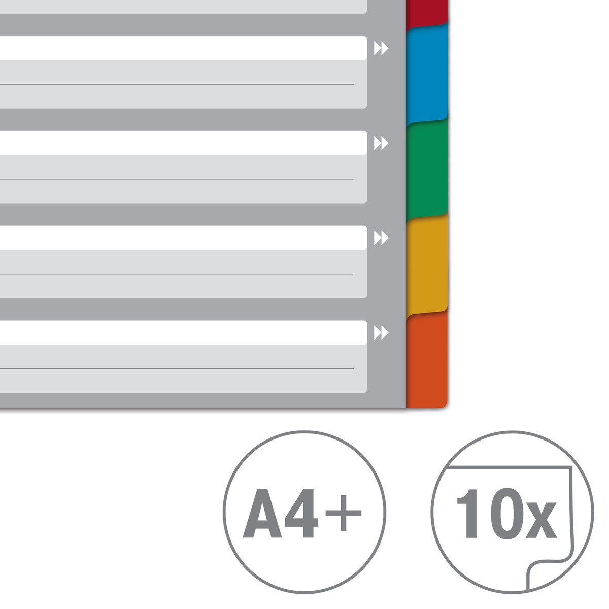 • Register im A4-Format mit Überbreite für eine geordnete Ablage der Unterlagen bei der Arbeit oder zu Hause