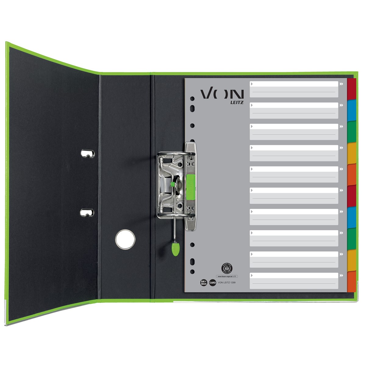 • Mit 10 blanko Registern aus Karton in verschiedenen Farben für eine übersichtliche Ablage und leichtes Auffinden von Unterlagen