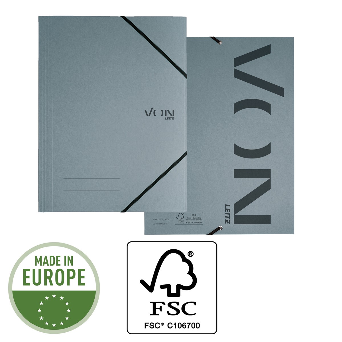 Moderne und funktionale A4-Eckspannermappe für die ganze Familie und für jeden Tag. Diese A4-Mappe ist die perfekte Lösung zur Ablage von Unterlagen für das Studium und Home Office oder für unterwegs. Sie verfügt über 3 Klappen innen und einem Gummizug, um Unterlagen zu schützen und leicht zugänglich zu machen. Diese langlebigen A4-Mappen aus Karton eignen sich zum Ordnen und Aufbewahren alltäglicher Unterlagen wie Haushaltsrechnungen, Prospekte oder Projektarbeiten. Hergestellt aus hochwertigem, säurefreiem, FSC-zertifiziertem Karton, der nach dem Gebrauch leicht zu recyceln ist und somit eine umweltfreundliche Wahl darstellt. Erhältlich in einer Auswahl klassischer Farben mit einem modernen Aufdruck. Everyday quality - von Leitz.