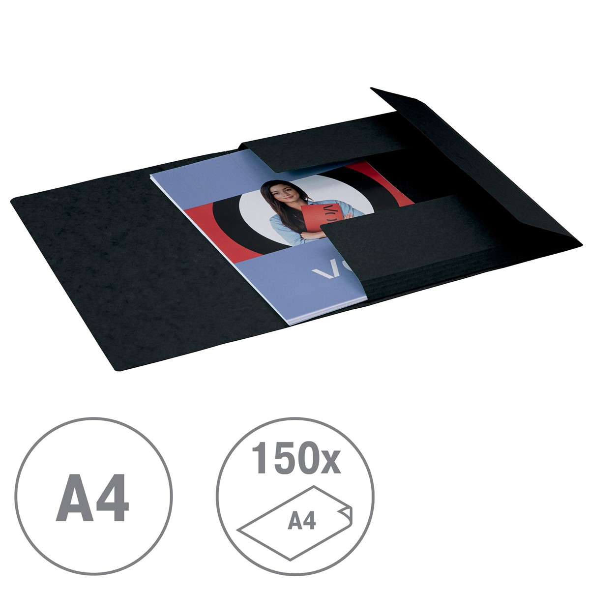 • Mit 3 Klappen und einem Gummibandverschluss zum Schutz und zur Sicherung der Unterlagen