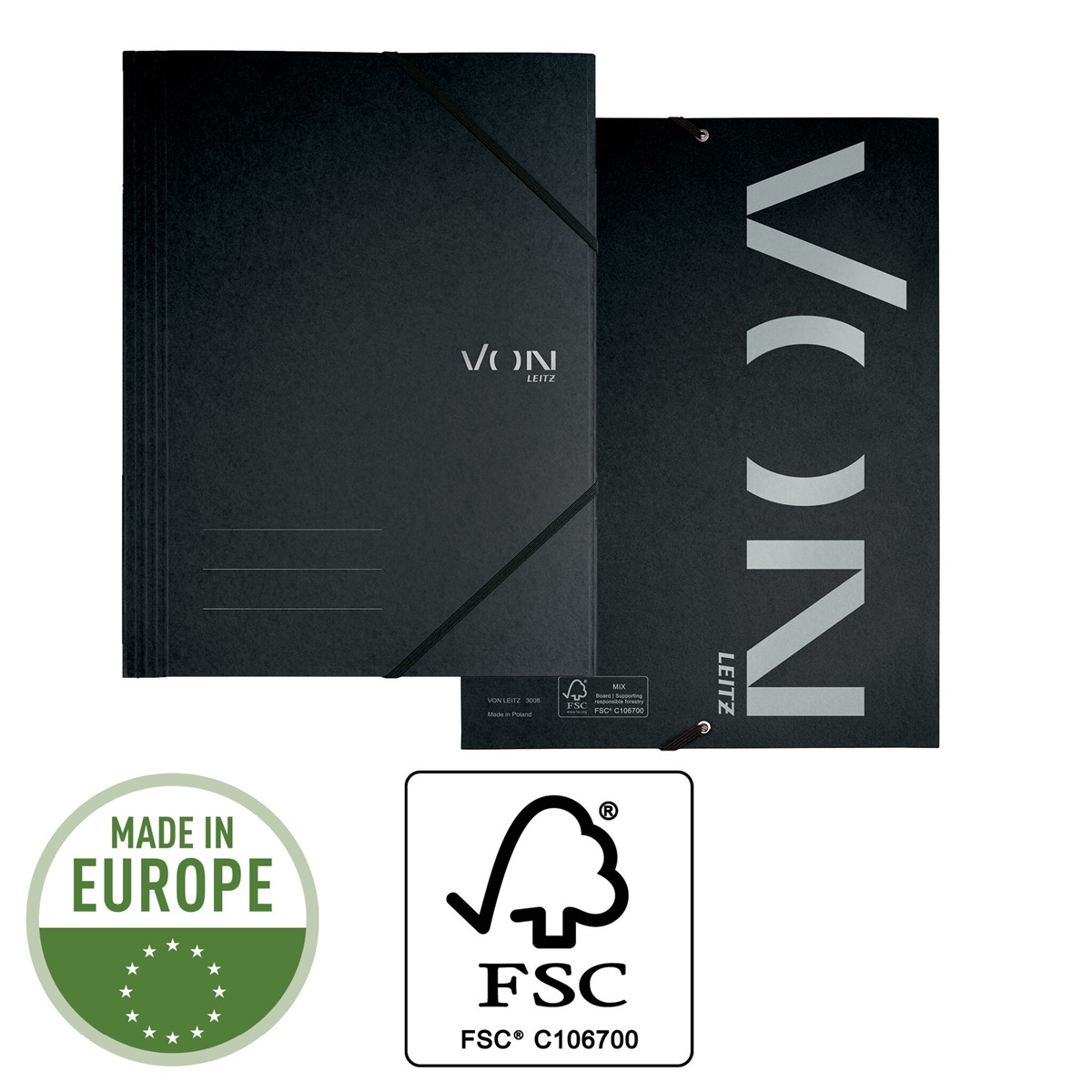 Moderne und funktionale A4-Eckspannermappe für die ganze Familie und für jeden Tag. Diese A4-Mappe ist die perfekte Lösung zur Ablage von Unterlagen für das Studium und Home Office oder für unterwegs. Sie verfügt über 3 Klappen innen und einem Gummizug, um Unterlagen zu schützen und leicht zugänglich zu machen. Diese langlebigen A4-Mappen aus Karton eignen sich zum Ordnen und Aufbewahren alltäglicher Unterlagen wie Haushaltsrechnungen, Prospekte oder Projektarbeiten. Hergestellt aus hochwertigem, säurefreiem, FSC-zertifiziertem Karton, der nach dem Gebrauch leicht zu recyceln ist und somit eine umweltfreundliche Wahl darstellt. Erhältlich in einer Auswahl klassischer Farben mit einem modernen Aufdruck. Everyday quality - von Leitz.