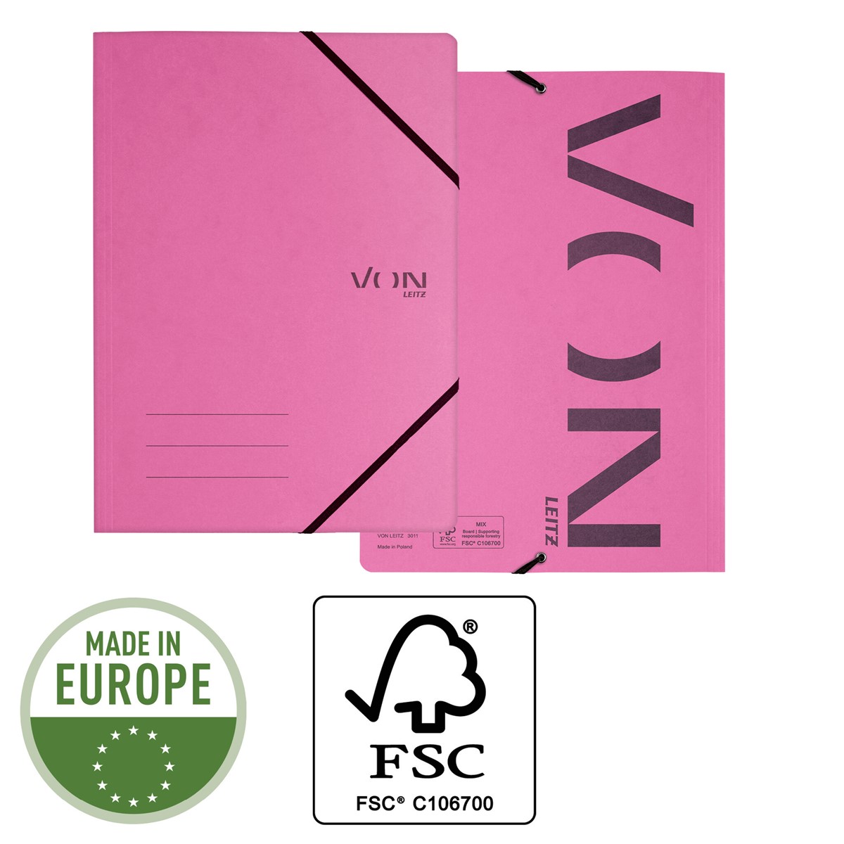 Moderne und funktionale A4-Eckspannermappe aus Karton für die ganze Familie und für jeden Tag. Diese A4-Eckspannermappe ist die perfekte Lösung zur Ablage von Unterlagen für das Studium und Home Office oder für unterwegs. Ein elastischer Verschluss sorgt dafür, dass die Dokumente sicher und leicht zugänglich sind. Diese langlebigen A4-Eckspannermappen aus Karton eignen sich zum Ordnen und Aufbewahren alltäglicher Unterlagen wie Haushaltsrechnungen, Prospekte oder Projektarbeiten. Hergestellt aus hochwertigem, säurefreiem, FSC-zertifiziertem Karton, der nach dem Gebrauch leicht zu recyceln ist und somit eine umweltfreundliche Wahl darstellt. Erhältlich in einer Auswahl klassischer Farben mit einem modernen Aufdruck. Everyday quality - von Leitz.
