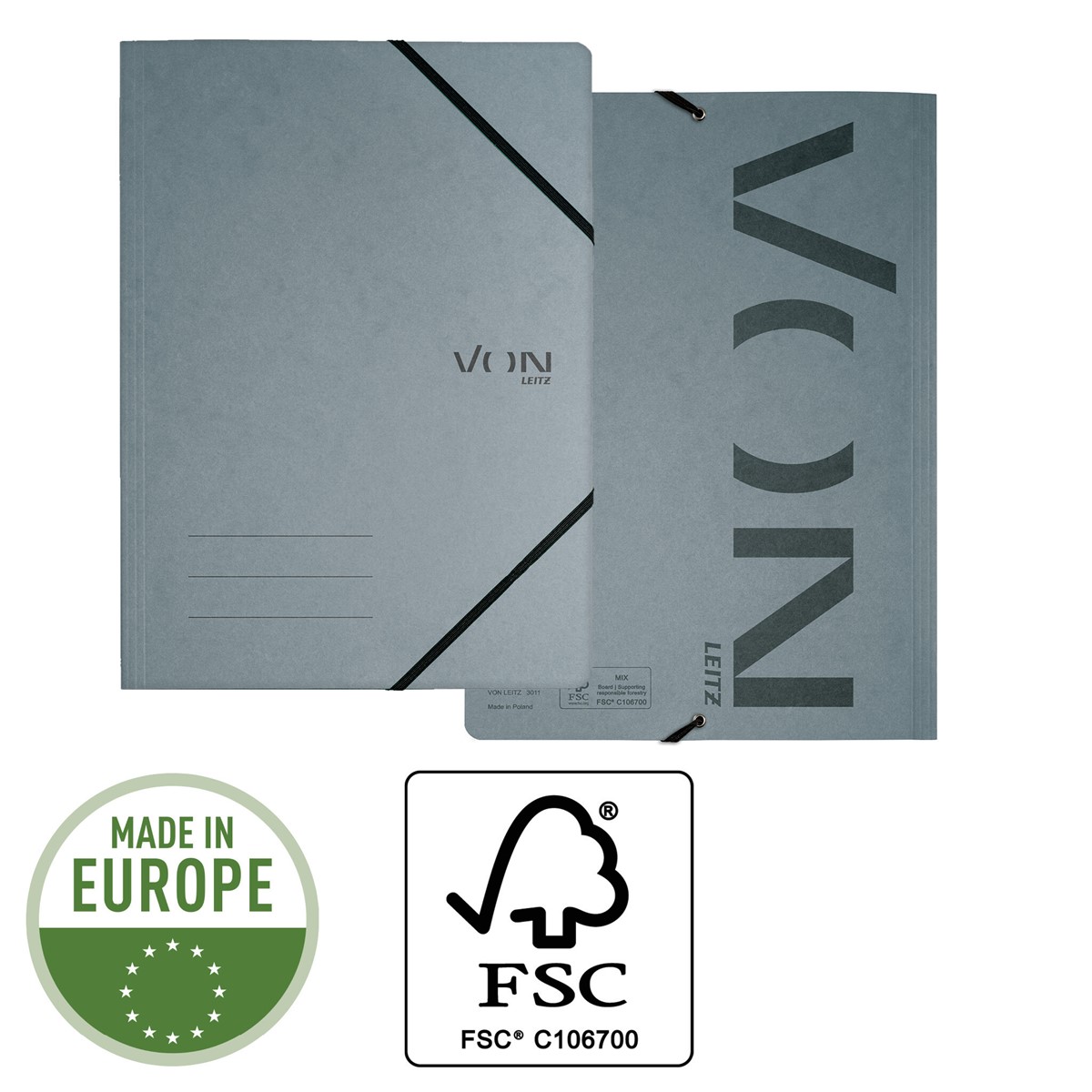 Moderne und funktionale A4-Eckspannermappe aus Karton für die ganze Familie und für jeden Tag. Diese A4-Eckspannermappe ist die perfekte Lösung zur Ablage von Unterlagen für das Studium und Home Office oder für unterwegs. Ein elastischer Verschluss sorgt dafür, dass die Dokumente sicher und leicht zugänglich sind. Diese langlebigen A4-Eckspannermappen aus Karton eignen sich zum Ordnen und Aufbewahren alltäglicher Unterlagen wie Haushaltsrechnungen, Prospekte oder Projektarbeiten. Hergestellt aus hochwertigem, säurefreiem, FSC-zertifiziertem Karton, der nach dem Gebrauch leicht zu recyceln ist und somit eine umweltfreundliche Wahl darstellt. Erhältlich in einer Auswahl klassischer Farben mit einem modernen Aufdruck. Everyday quality - von Leitz.