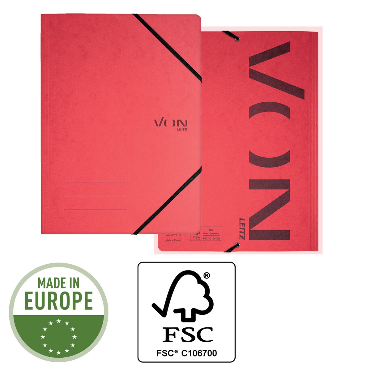 Moderne und funktionale A4-Eckspannermappe aus Karton für die ganze Familie und für jeden Tag. Diese A4-Eckspannermappe ist die perfekte Lösung zur Ablage von Unterlagen für das Studium und Home Office oder für unterwegs. Ein elastischer Verschluss sorgt dafür, dass die Dokumente sicher und leicht zugänglich sind. Diese langlebigen A4-Eckspannermappen aus Karton eignen sich zum Ordnen und Aufbewahren alltäglicher Unterlagen wie Haushaltsrechnungen, Prospekte oder Projektarbeiten. Hergestellt aus hochwertigem, säurefreiem, FSC-zertifiziertem Karton, der nach dem Gebrauch leicht zu recyceln ist und somit eine umweltfreundliche Wahl darstellt. Erhältlich in einer Auswahl klassischer Farben mit einem modernen Aufdruck. Everyday quality - von Leitz.