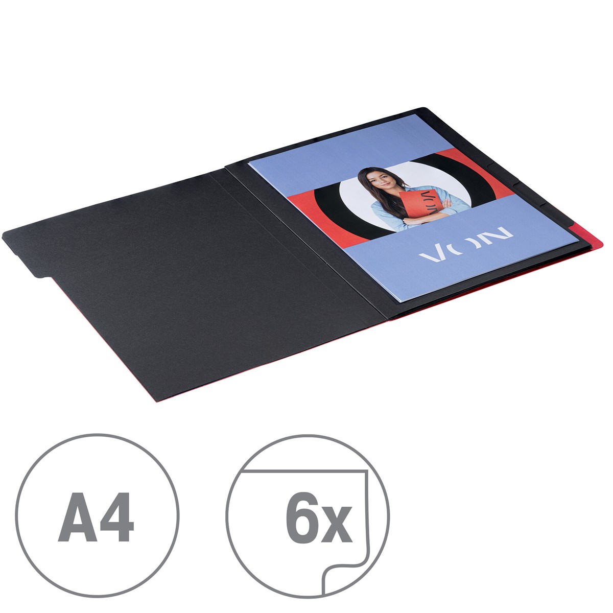 • Strukturierte Ablage der Unterlagen nach Kategorie, Thema oder Projekt mithilfe der 6 Fächer und farbigen Taben