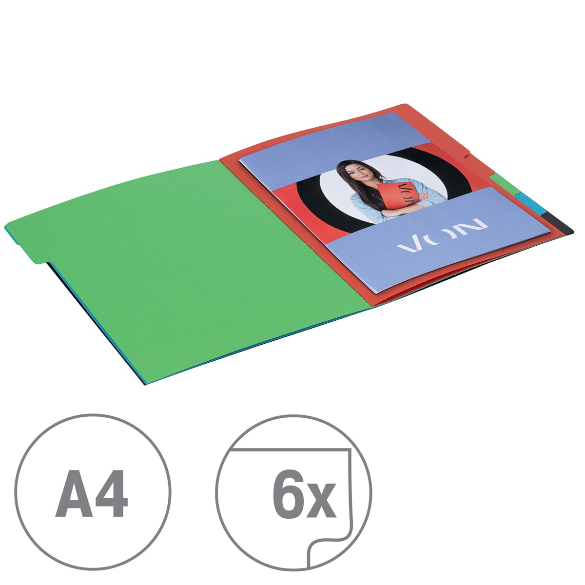 • Strukturierte Ablage der Unterlagen nach Kategorie, Thema oder Projekt mithilfe der 6 Fächer und farbigen Taben