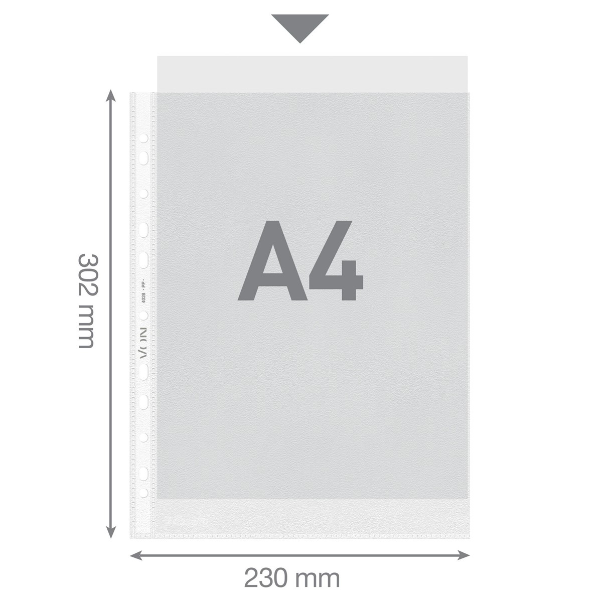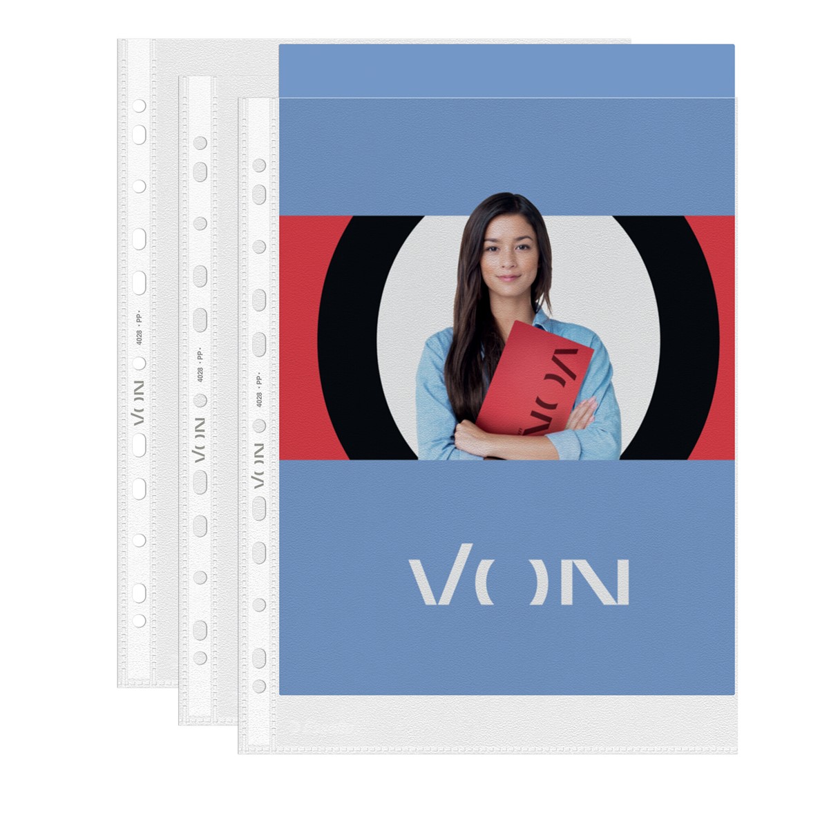 Prospekthüllen mit einer klaren, matten Oberfläche, ideal für den täglichen Gebrauch zu Hause, im Büro oder in der Schule. Die 11-Loch-Universallochung ermöglicht die bequeme Ablage der Hülle in Ordnern und Ringbüchern. Dank Öffnung oben ist der Zugriff auf die Unterlagen sehr einfach und erspart das zusätzliche Öffnen der Ordnermechanik. Dokumentenechtes und säurefreies Material gewährleistet den langfristigen Schutz der Dokumente. Hergestellt aus PP-Kunststoff (Polypropylen) mit 30% vor Gebrauch recyceltem Kunststoff (Industrieabfälle/ -verschnitte bzw. Produktionsreste), zu 100% recycelbar.