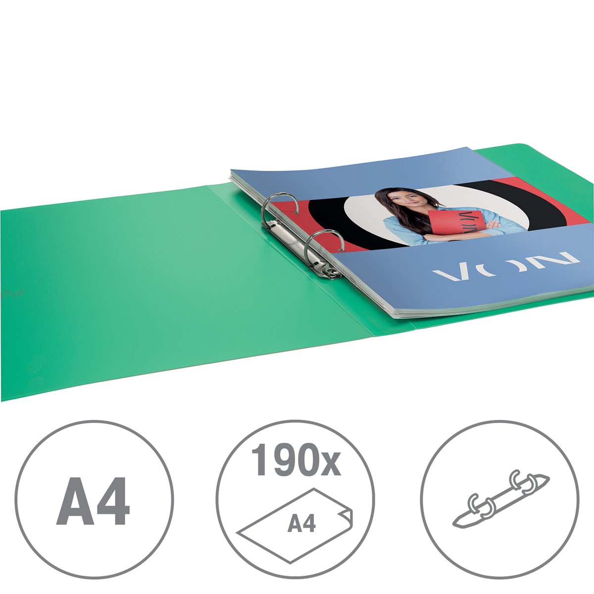 Modernes und funktionales A4-Ringbuch für die ganze Familie und für den täglichen Gebrauch. Dieses A4-Ringbuch ist die perfekte Lösung zur Ablage von Unterlagen für das Studium oder Home Office und für unterwegs. Es verfügt über eine stabile 2-Rund-Ring-Mechanik, die sicherstellt, dass alle Unterlagen sicher aufbewahrt werden und leicht zugänglich sind. Diese langlebigen Ringbücher aus Kunststoff eignen sich für die tägliche Ablage gelochter Unterlagen, z. B. zur Organisation von Haushaltsrechnungen, Rezepten oder als Projektordner in verschiedenen Farben. Hergestellt aus durchsichtigem, abwischbarem Polypropylen und erhältlich in einer Auswahl klassischer Farben mit einem modernen silbernen Aufdruck des VON-Designs. Everyday quality - von Leitz.