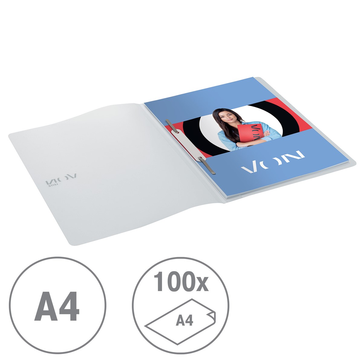 Moderner und funktionaler A4-Schnellhefter für die ganze Familie und für jeden Tag. Dieser A4-Schnellhefter ist die perfekte Lösung zur Ablage von Unterlagen für das Studium oder Home Office und unterwegs. Er verfügt über stabile Klammern aus Metall zum Abheften, die dafür sorgen, dass alle Unterlagen sicher aufbewahrt werden und leicht zugänglich sind. Diese langlebigen Schnellhefter aus Kunststoff eignen sich für die tägliche Ablage gelochter Unterlagen, z. B. für Aufsätze, Rezepte oder als Projektordner in verschiedenen Farben. Hergestellt aus durchsichtigem, abwischbarem Polypropylen und erhältlich in einer Auswahl klassischer Farben mit einem modernen silbernen Aufdruck des VON-Designs. Everyday quality - von Leitz.