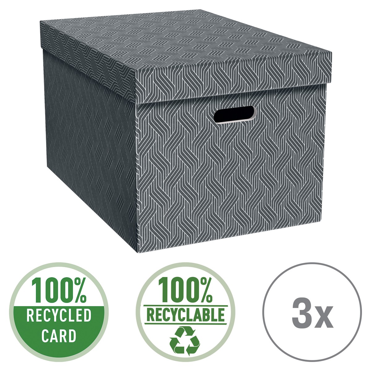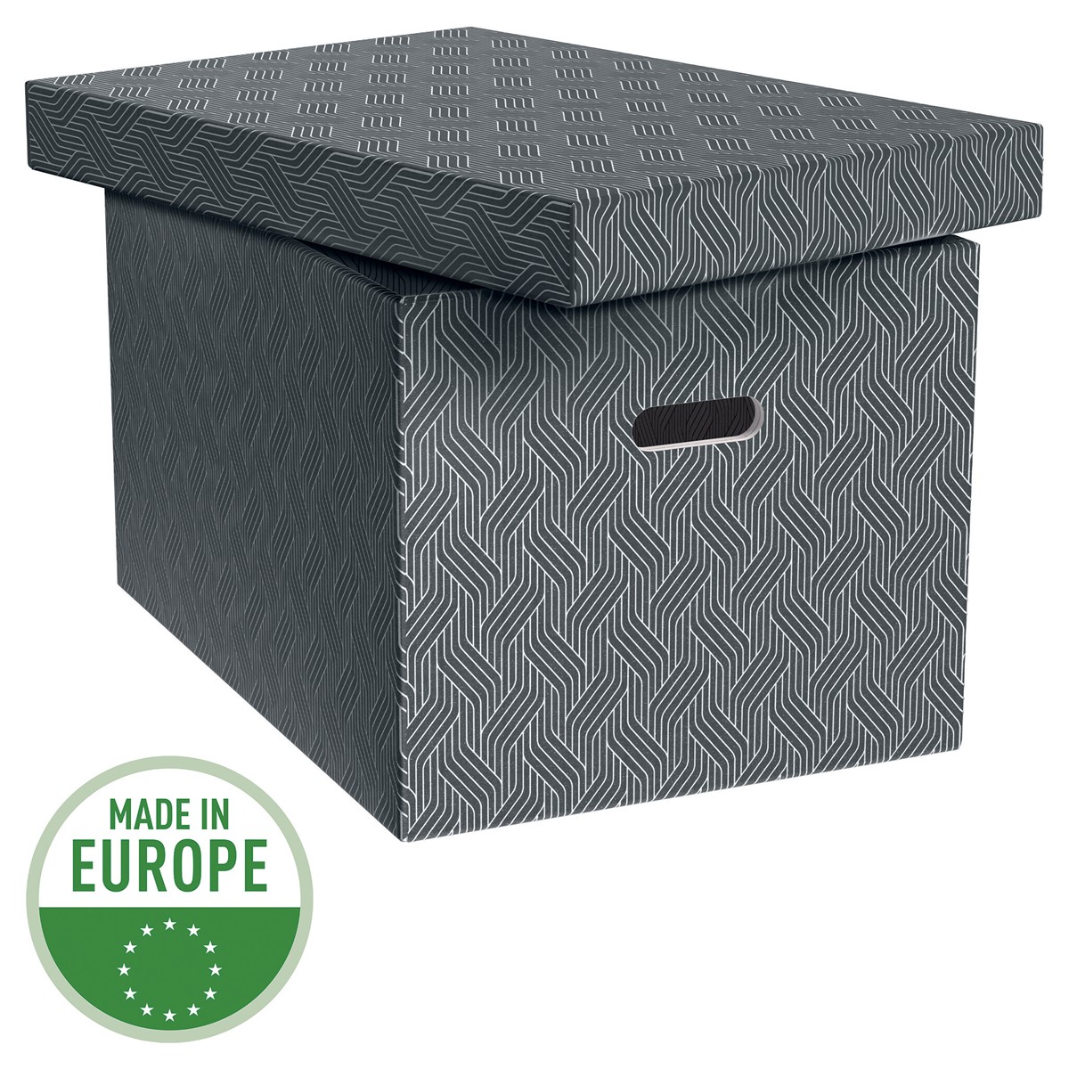 Moderne und praktische Aufbewahrungsboxen aus Karton mit Deckel für die ganze Familie und für den täglichen Gebrauch. Diese dekorativen Aufbewahrungsboxen können allein, auf Regalen oder in Schränken verwendet werden und bieten eine flexible, sofortige Aufbewahrungslösung. Integrierte Tragegriffe und ein abnehmbarer Deckel sorgen für eine praktische Aufbewahrung, während das einzigartige VON-Design in neutralen Farben sich nahtlos in Ihr Zuhause einfügt. Die Boxen sind flach und handlich verpackt. Beim Aufstellen der Kisten werden die Seiten zurückgeklappt, so dass die doppelten Wände für noch mehr Stabilität und Standfestigkeit sorgen. Diese modernen Aufbewahrungsboxen eignen sich perfekt zum Archivieren von Unterlagen und zum Organisieren alltäglicher Dinge wie Bücher, Spielzeug und Bastelutensilien. Hergestellt aus FSC-zertifizierter, abwischbarer, 100 % recycelter und 100 % recycelbarer Wellpappe und damit eine echte umweltfreundliche Alternative. Qualität für jeden Tag - von Leitz.